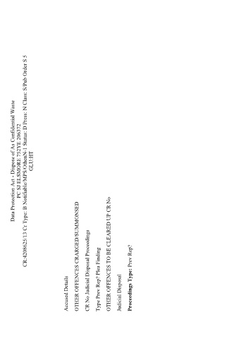 CR No Judicial Disposal Proceedings Type Prev Rep? Plea Finding OTHER OFFENCES TO BE CLEARED UP CR No Proceedings Type: Prev Rep?