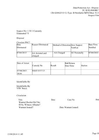 Date Reason Eliminated Method of Detection How Suspect Bate/Time Notified By: