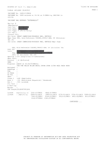 SINGLE INCIDENT PRINTOUT