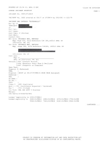 SINGLE INCIDENT PRINTOUT