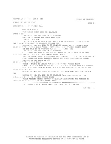 22:40:30 07JUN14 CHS CCC: CCB 0{) 005: ROBBERY,633: KNIFE / BLADED ARTICLE